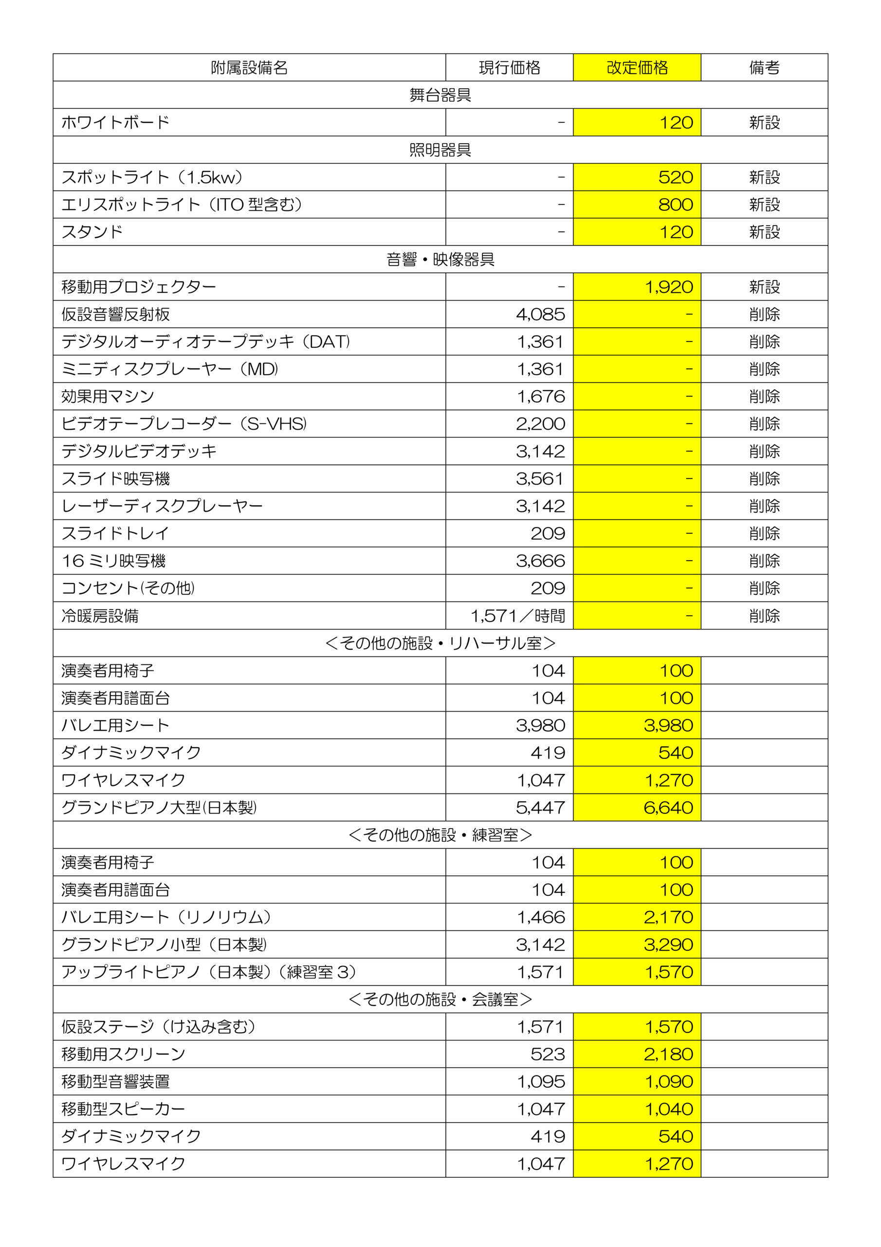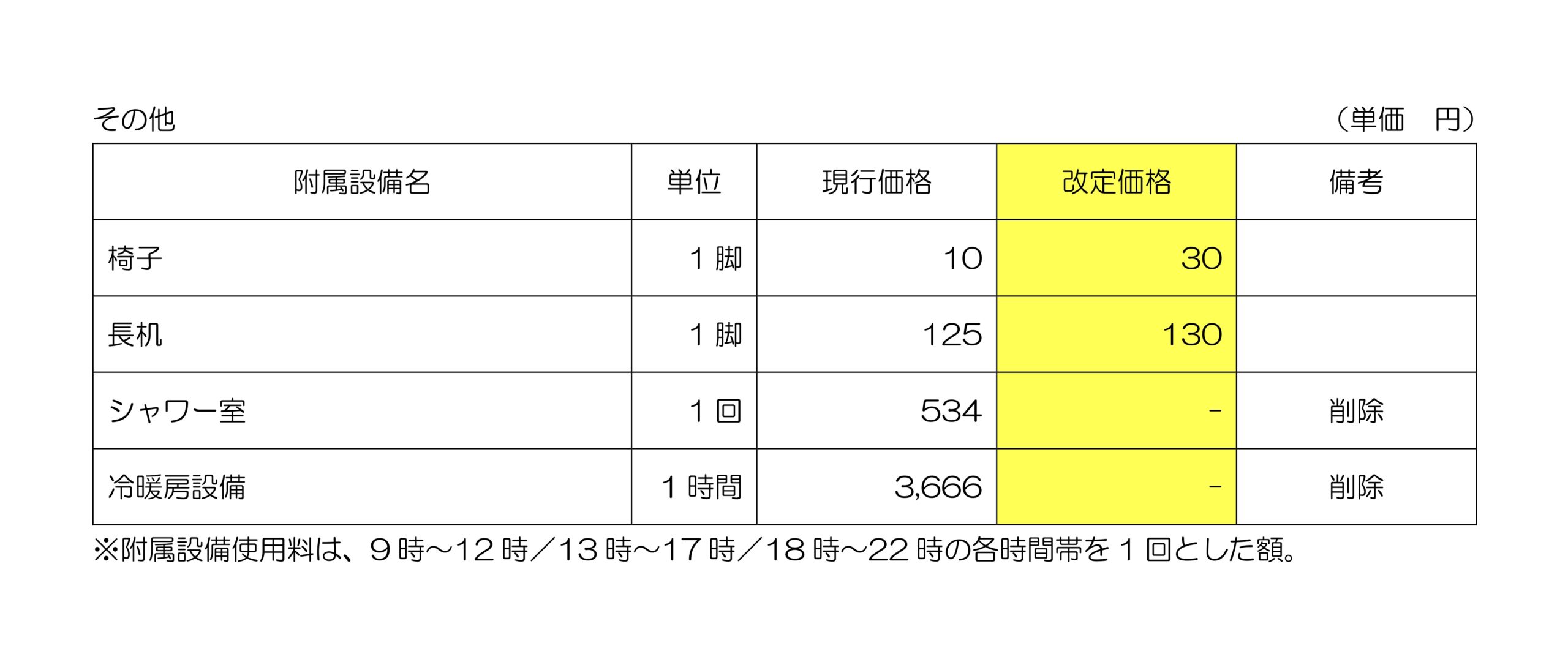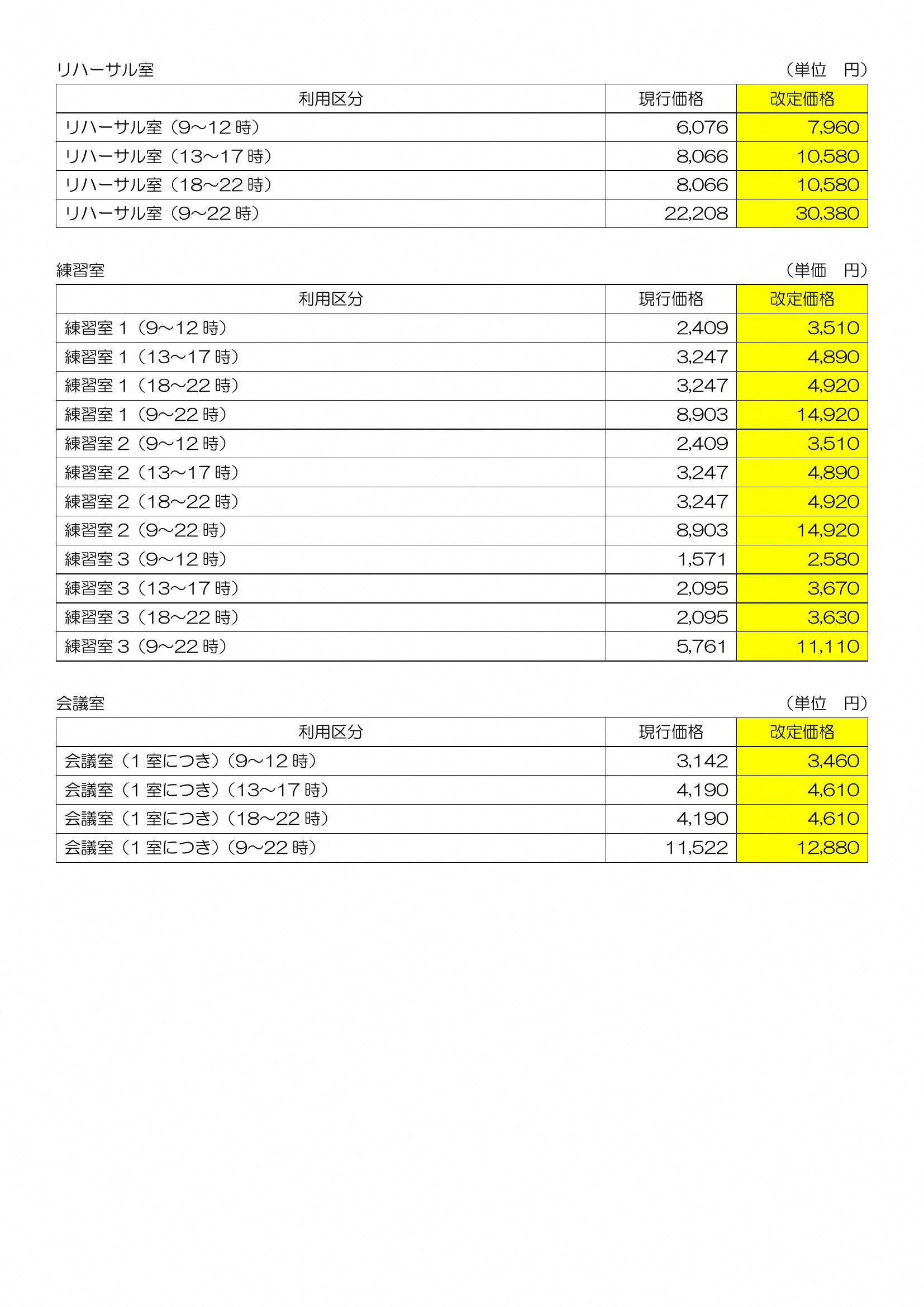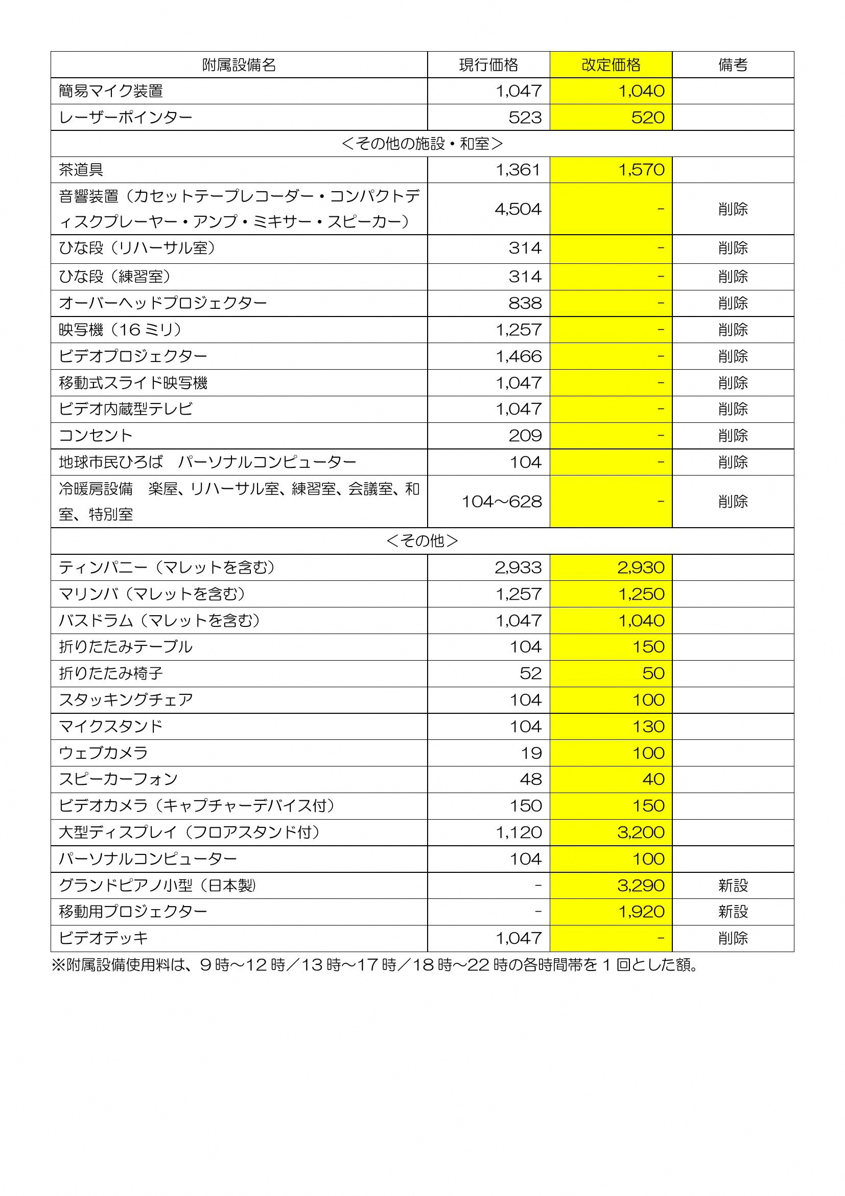 ※改定後の使用料には、冷暖房料金を含みます。