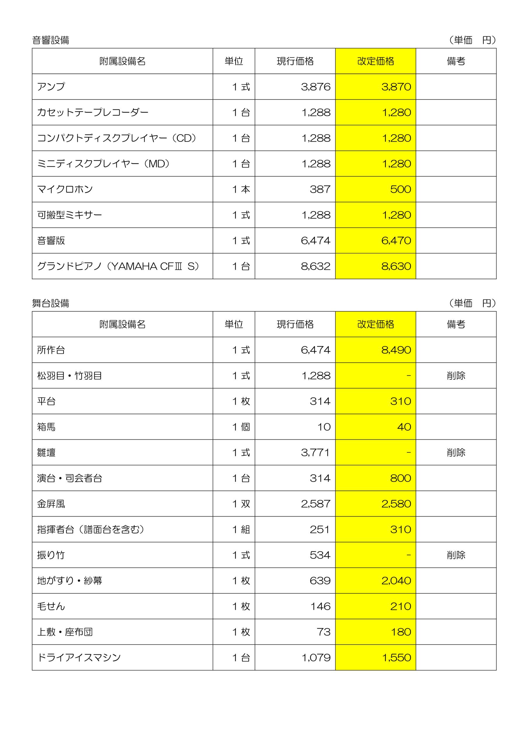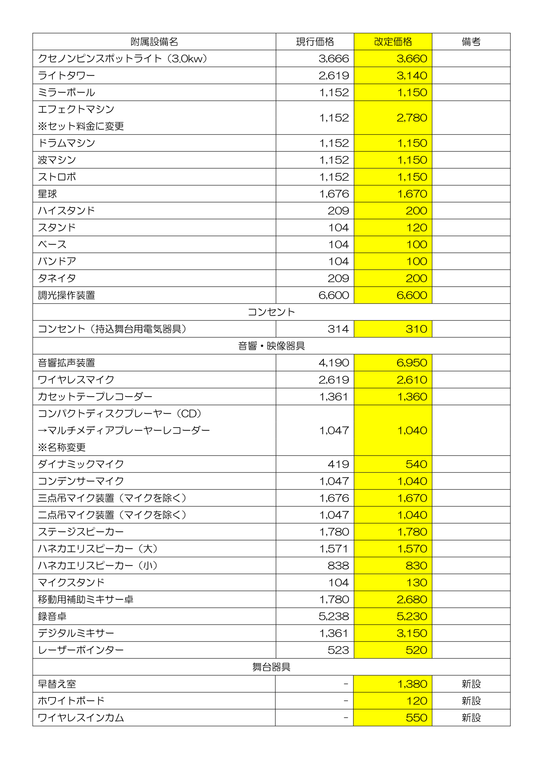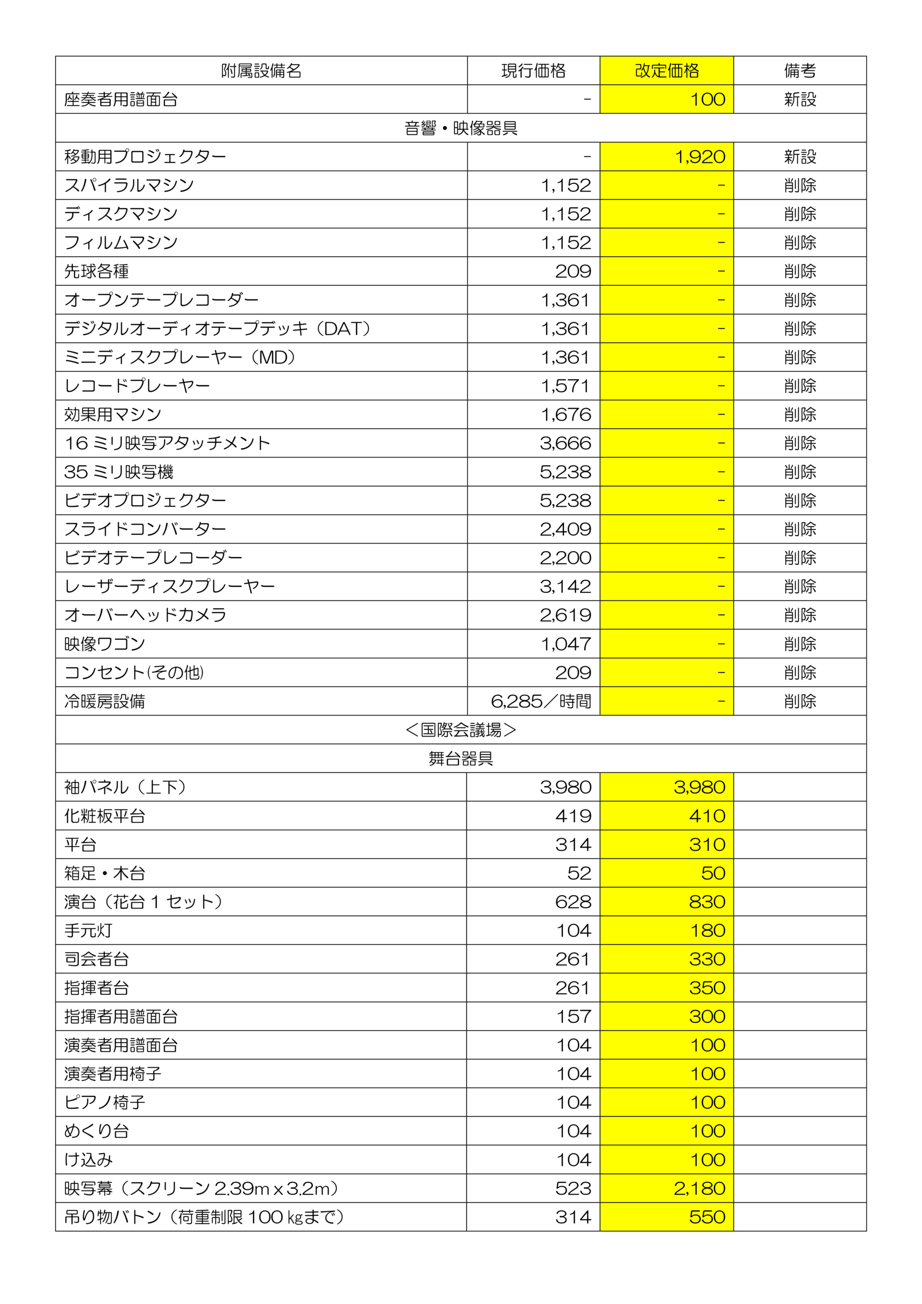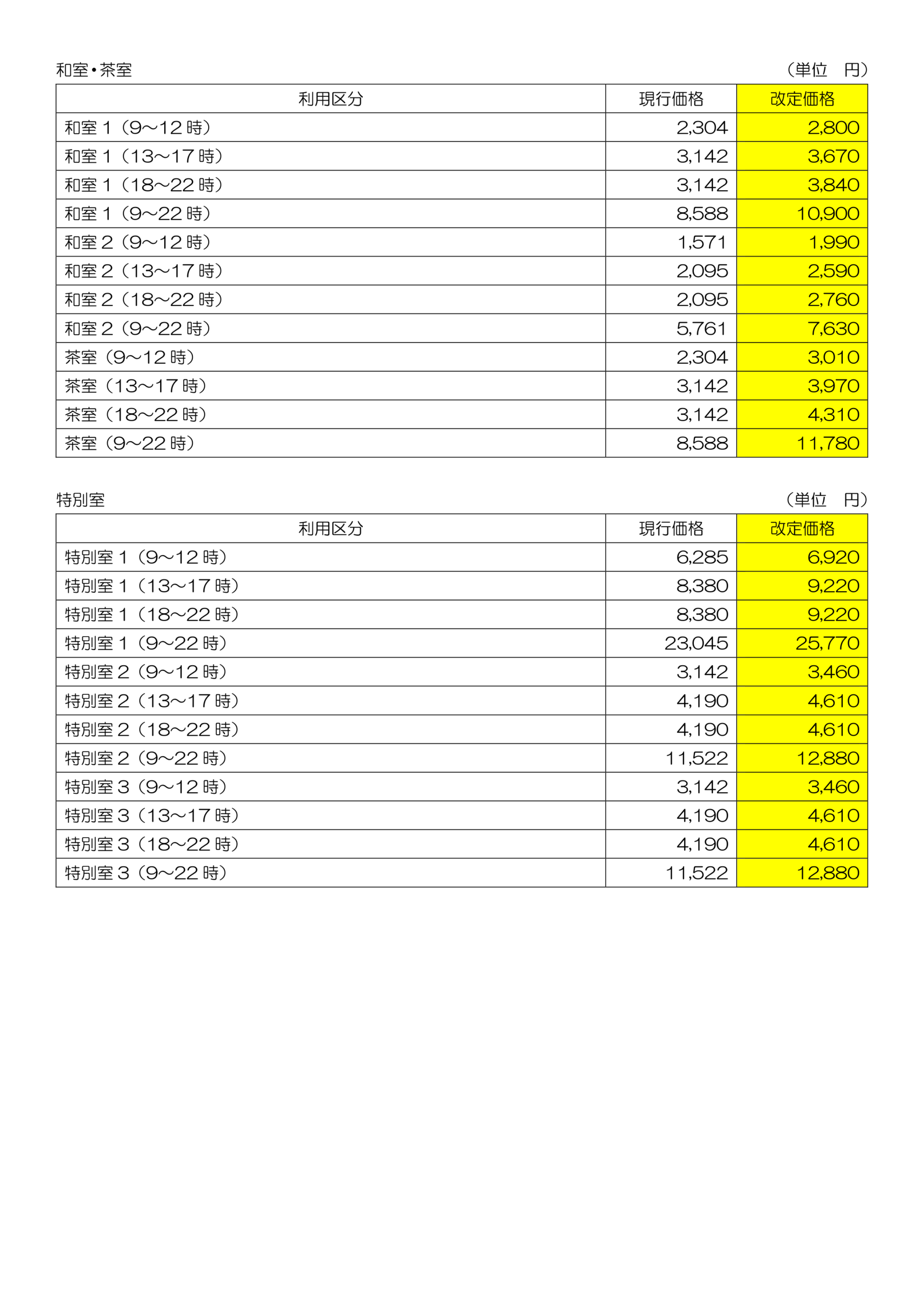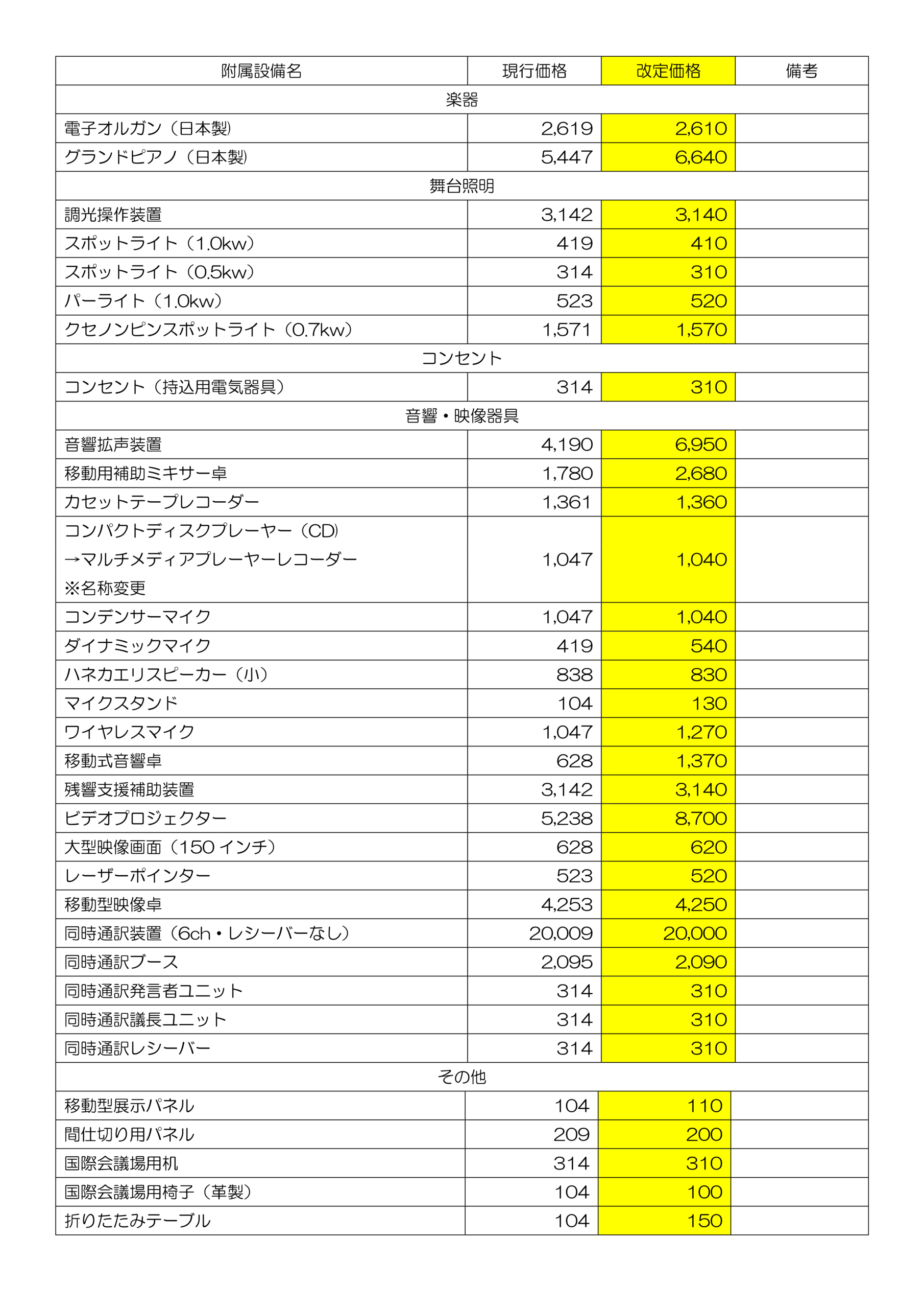 ※改定後の使用料には、冷暖房料金を含みます。