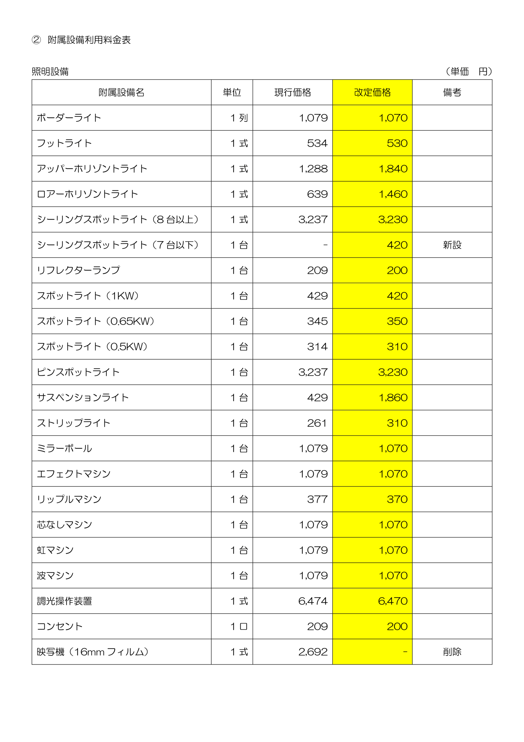② 附属設備利用料金表※PDF版を本ページ最下部に添付しています。
