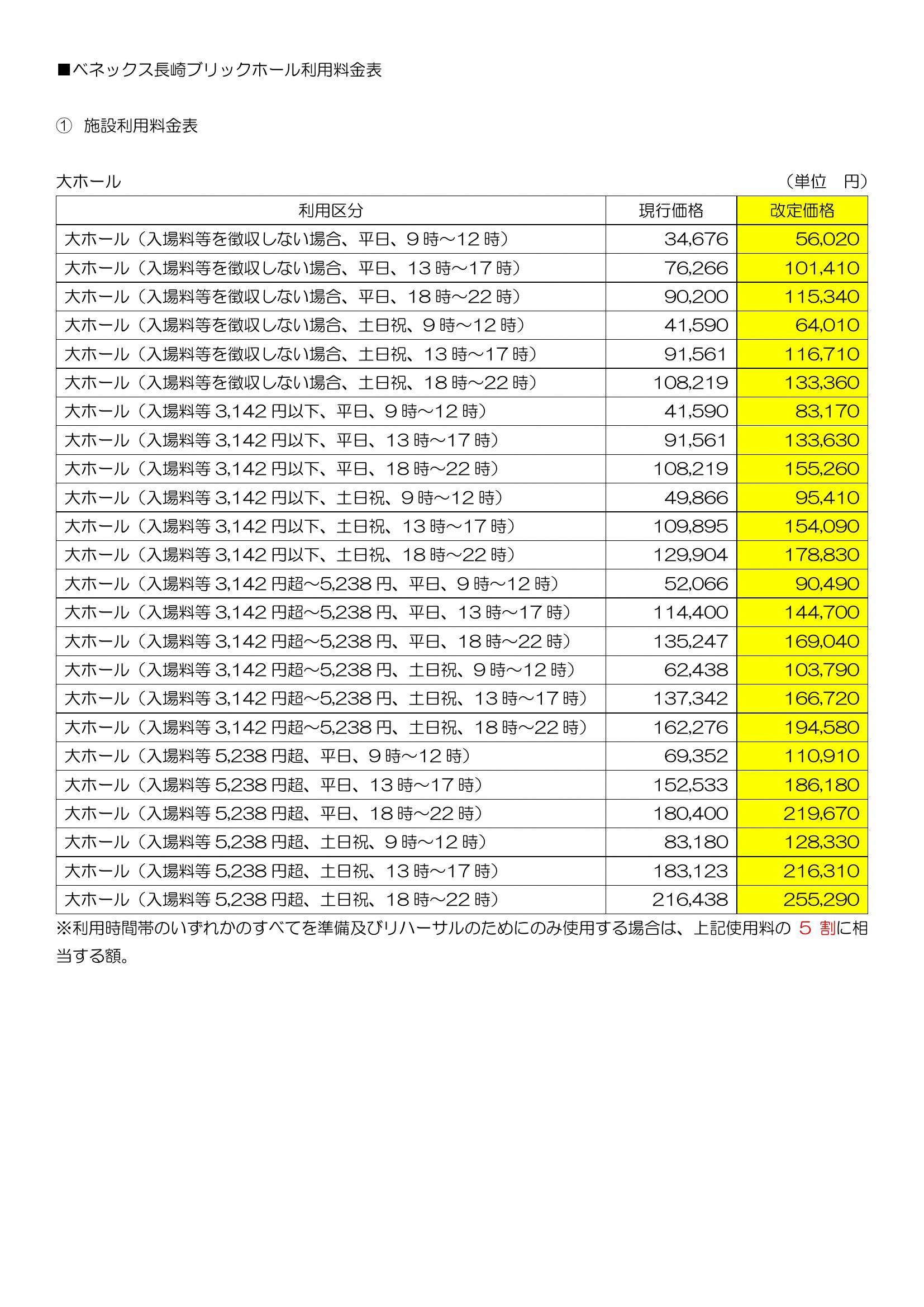 ※ベネックス長崎ブリックホールは令和8年3月30日(月)まで、長崎市チトセピアホールは令和8年3月31日(火)までに各施設の利用申込書を提出した利用予約を現行価格とします。